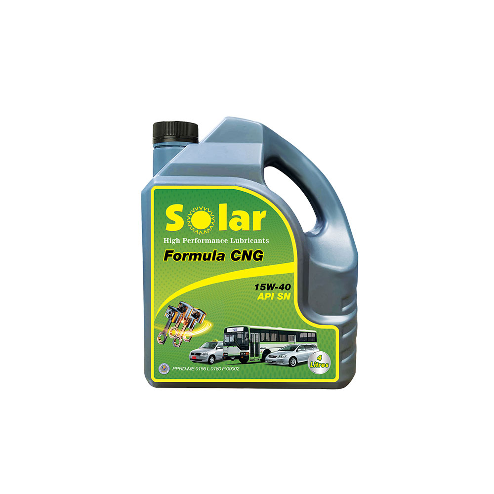 Solar Formula CNG 15W-40 API SN have superior performance of thermal stability and oxidation control, Excellent Wear Protection, Effective Detergency Optimized, Ash Level and Shear Stability.