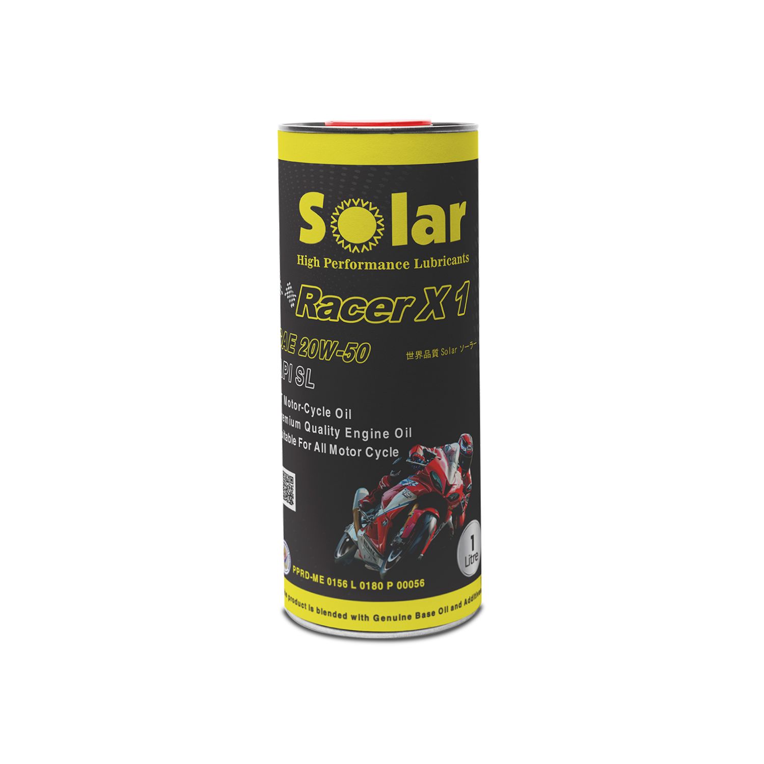 Solar Racer X2 is a premium performance, sheer stable, multi grade, multifunctional fluid specifically designed for use in four - stroke motorcycle engines, clutches and gearboxes, and portable power equipment engines requiring JASOMA, API SN lubricants, including high specific output engines operating in severe service.